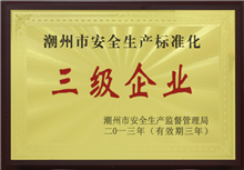 • Third-grade Manufacturer of Safety Standard in Chaozhou City